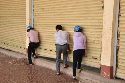 | 3 cán bộ xã Khánh Lộc không mở được cửa chính của Trung tâm Văn hoá - Thể thao xã |