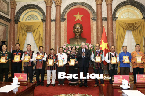 Ông Trương Dù Chênh - đại biểu tỉnh Bạc Liêu (thứ hai từ trái sang) tại buổi gặp Chủ tịch nước - Tô Lâm. Ảnh: P.N