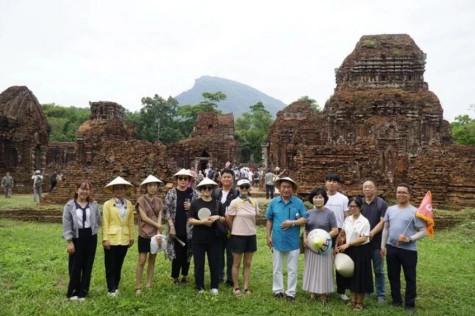 Đoàn du khách Hàn Quốc tham quan Di sản Văn hóa thế giới Mỹ Sơn sáng 2/9. (Ảnh: TTXVN)