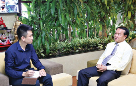 | Ông Lê Thanh Thuấn, Chủ tịch Hội đồng Quản trị Tập đoàn Sao Mai (phải) trả lời phỏng vấn. |