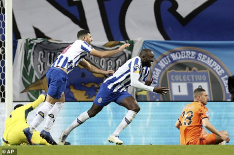 Merega (giữa) ghi bàn trong chiến thắng của Porto.