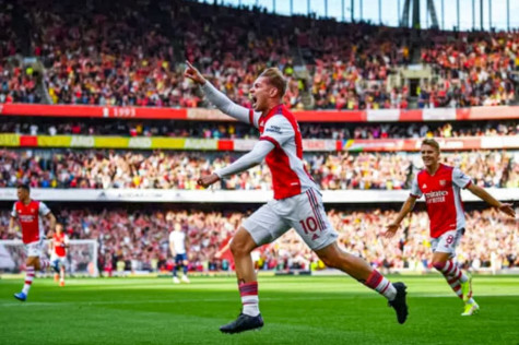 | Smith Rowe mở điểm trong chiến thắng tưng bừng của Arsenal. |