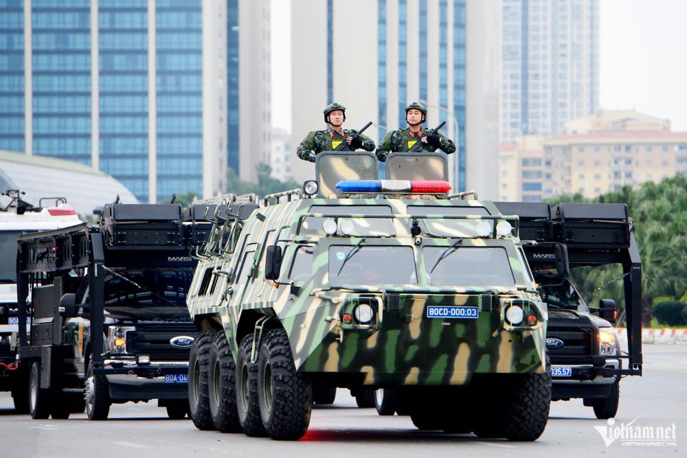 Cũng tại buổi diễn tập, dàn khí tài hiện đại của lực lượng Công an được trình diễn, thu hút sự chú ý của những người xung quanh.