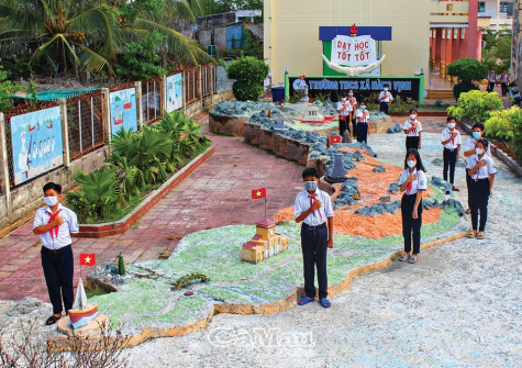 Công trình bản đồ đất nước Việt Nam được thầy cô, Liên đội Trường THCS Hàng Vịnh (huyện Năm Căn) xây dựng từ năm 2014 đến nay, hỗ trợ các buổi học ngoại khoá và giáo dục lòng yêu nước, khẳng định chủ quyền lãnh thổ của đất nước. |