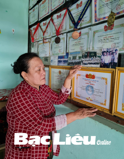 Những tờ giấy khen của các con là động lực giúp cô Thạch Thị Kim Hoa vượt qua mọi khó khăn trong cuộc sống.