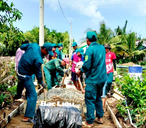Lực lượng vũ trang xây dựng đường nông thôn. Ảnh: Tùng Lâm
