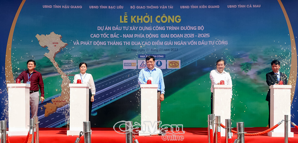 Ngày 1/1/2023, lãnh đạo tỉnh Cà Mau thực hiện nghi thức khởi công tuyến cao tốc Cần Thơ - Cà Mau tại điểm cầu trực tuyến tỉnh Cà Mau.