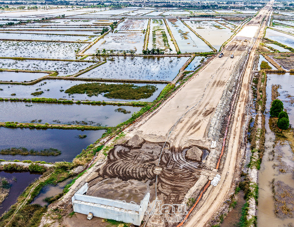 Triển khai xây dựng trong hơn 3 năm trên vùng đất đầm lầy, đa dạng hệ sinh thái, phải vượt qua nhiều sông lớn, kênh rạch chằng chịt, các đơn vị thi công đối mặt với không ít khó khăn, đặc biệt là công tác vận chuyển vật liệu, tình trạng thiếu cát san lấp nền đường, buộc phải sử dụng cát biển thay thế. Tuy nhiên, bằng quyết tâm cao độ, sự chỉ đạo quyết liệt của Chính phủ, các bộ, ngành Trung ương và nỗ lực không ngừng của các đơn vị thi công, dự án đã vượt tiến độ, đảm bảo chất lượng.