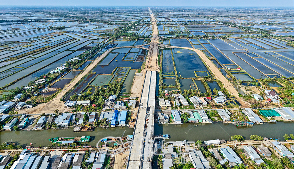 Các hạng mục cầu trên tuyến cao tốc bắt đầu hình thành, vượt qua hệ thống sông lớn, kênh rạch chằng chịt.