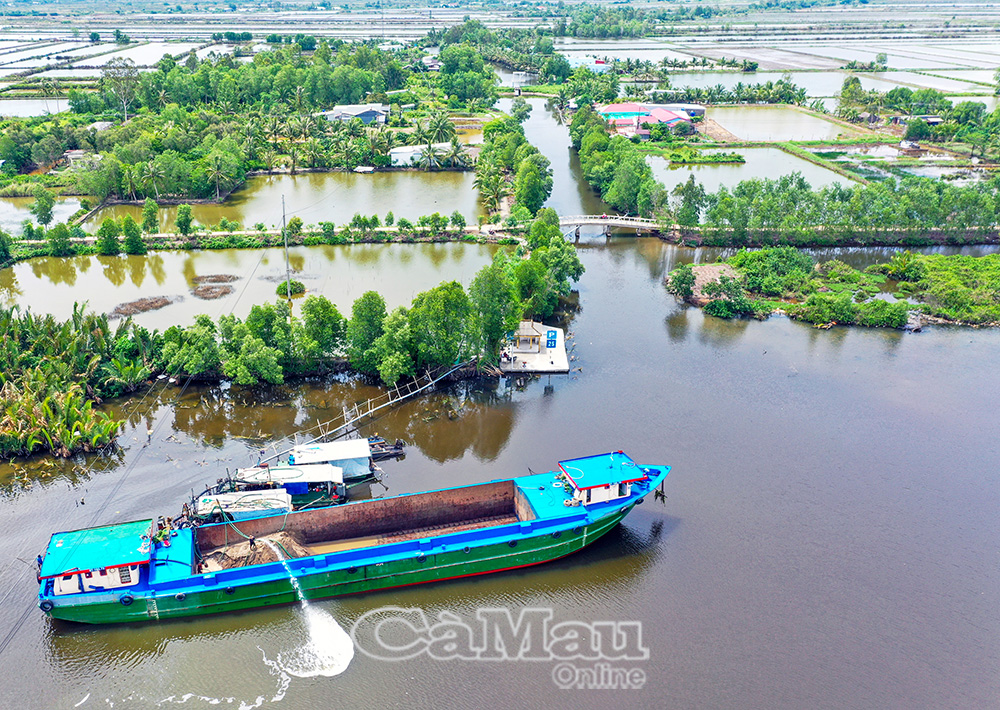 Những chuyến sà lan chở cát vượt quãng đường dài, qua nhiều kênh rạch, đưa vật liệu về công trường cao tốc trên địa bàn tỉnh Cà Mau.