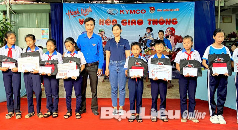 Vấn đề an toàn giao thông (ATGT) cho thanh thiếu niên, học sinh được quan tâm đặc biệt, bởi đây là nhóm đối tượng dễ tổn thương do tai nạn giao thông. Nhằm trang bị một số kiến thức pháp luật cơ bản, kỹ năng tham gia giao thông an toàn cho đối tượng này, chương trình “Hành trình VHGT năm 2021” được Ban Thường vụ Tỉnh đoàn phối hợp với Công ty TNHH Văn Tươi Bạc Liêu, Xe máy Kymco Việt Nam tổ chức tại các trường: Trường THCS Bạc Liêu - Ninh Bình (TP. Bạc Liêu), THCS Nguyễn Minh Nhựt (thị trấn Châu Hưng, huyện Vĩnh Lợi), THCS Hòa Bình (huyện Hòa Bình) và THCS Giá Rai B (TX. Giá Rai). Tại hành trình VHGT lần này, các doanh nghiệp cùng tham gia đã trao tặng 40 suất học bổng, 4.000 quyển tập cho học sinh vượt khó học giỏi tại các trường.