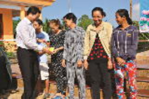 | Phó chủ tịch UBND tỉnh Cà Mau Thân Đức Hưởng tặng quà các gia đình chính sách tại khu căn cứ. |