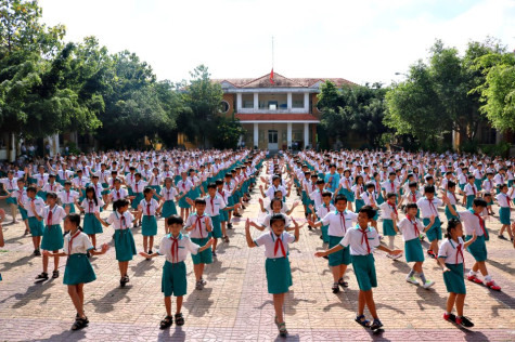 Những điệu múa dân vũ trên nền nhạc bài hát "Bống bống bang bang" đã làm không khí của buổi thể dục giữa giờ sôi động hẳn lên. Gần 500 học sinh của khối 4 và 5 hào hứng ra sân khi có hiệu lệnh đến giờ ra chơi, đứng ngay ngắn theo sự hướng dẫn của thầy tổng phụ trách Đội cùng các giáo viên chủ nhiệm. Tiếng nhạc vang lên, từng động tác theo đó được thể hiện nhịp nhàng, gương mặt hân hoan xua tan vẻ mệt mỏi, đồng thời tạo sự thoải mái cho những giờ học còn lại.