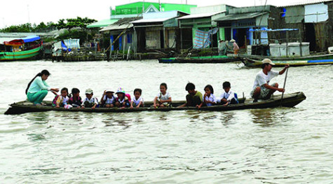 | Mạng lưới sông ngòi, kinh rạch chằng chịt, nhiều học sinh đến trường phụ thuộc vào đường thuỷ mà không được trang bị áo phao, tiềm ẩn nhiều rủi ro, nguy hiểm. |