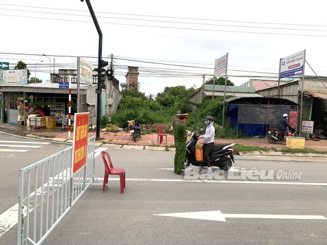 Lực lượng cảnh sát kiểm tra các phương tiện tham gia giao thông tại chốt phường Nhà Mát sau khi TP. Bạc Liêu thực hiện phong tỏa và cách ly y tế. Ảnh: T.A