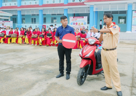 (CMO) Những kiến thức an toàn giao thông như lái xe, đi bộ như thế nào cho đúng, ý nghĩa các biển báo... vừa được Hệ thống xe máy Ngọc Anh với Hãng xe Kymco Việt Nam phổ cập cho hơn 1.300 em học sinh trường THPT Thái Thanh Hoà (huyện Đầm Dơi).