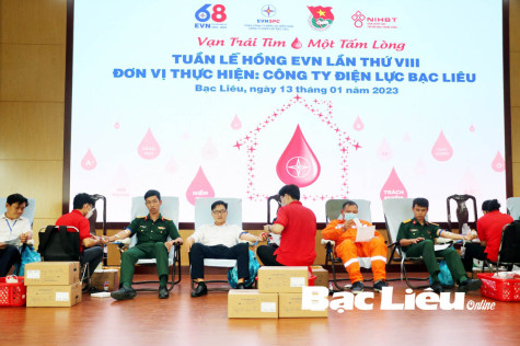 Trong đợt hiến máu lần 1 do Đoàn khối các cơ quan cấp tỉnh phối hợp với Điện lực Bạc Liêu tổ chức, Công ty Điện lực Bạc Liêu có 80 cán bộ, viên chức và người lao động đăng ký tham gia hoạt động hiến máu tình nguyện hưởng ứng Chương trình Tuần lễ hồng EVN lần thứ VIII.