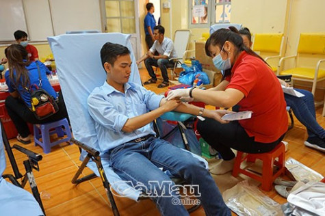Tình nguyện viên tích cực, hăng hái tham gia phong trào hiến máu tình nguyện. |