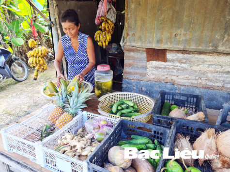 Cách đây hơn một năm, kinh tế gia đình của bà Trần Thị Vĩnh Hòa (ấp Nước Mặn, xã Hưng Hội, huyện Vĩnh Lợi) gặp khó khăn do nguồn vốn cạn kiệt dần trong thời gian tạm ngưng mua bán để phòng dịch COVID-19. Gia đình bà Hòa không có đất canh tác, cả nhà 3 người chỉ trông chờ vào sạp bán rau củ quả trước nhà.