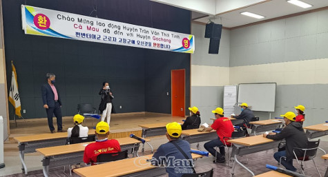 | Lao động Cà Mau nghe hướng dẫn trước khi làm việc tại Hàn Quốc. (Ảnh do Sở Lao động - Thương binh và Xã hội tỉnh cung cấp) |