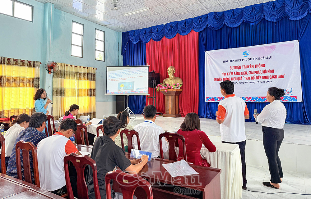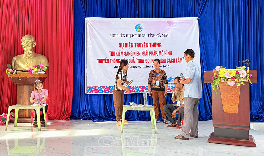 Thực hiện Dự án 8 “Thực hiện bình đẳng giới và giải quyết những vấn đề cấp thiết đối với phụ nữ và trẻ em” năm 2025, ngày 4/11, Hội Liên hiệp Phụ nữ tỉnh Cà Mau tổ chức sự kiện truyền thông tìm kiếm sáng kiến, giải pháp, mô hình truyền thông hiệu quả “Thay đổi nếp nghĩ, cách làm” tại xã Trần Văn Thời.