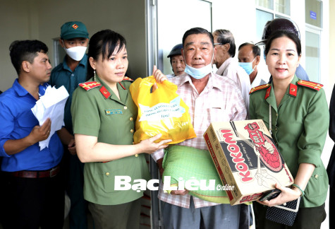 Công an tỉnh tặng quà cho hộ nghèo trên địa bàn TP. Bạc Liêu.
