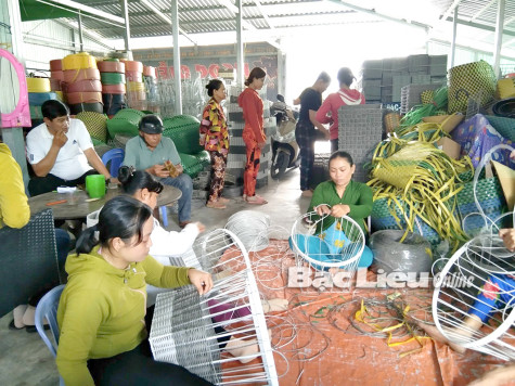 Hội viên, phụ nữ được học nghề và làm việc tại cơ sở đan đát Ngọc Diễm (ảnh chụp trước khi dịch COVID-19 bùng phát). Ảnh: Đ.P