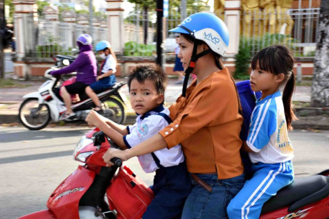| Vẫn còn nhiều bậc phụ huynh xem nhẹ vai trò của chiếc mũ bảo hiểm cho trẻ nhỏ khi lưu thông trên đường. |