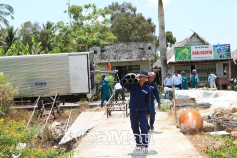 (CMO) Trong bối cảnh hạn mặn khốc liệt, đời sống người dân bị ảnh hưởng nặng nề vì thiếu nước sinh hoạt, ngày 19/3 Trung tâm Nước sạch và Vệ sinh môi trường nông thôn tỉnh Cà Mau đã hỗ trợ lắp đặt 2.000m ống nhựa dẫn nước sạch cho gần 100 hộ dân địa bàn xã Trần Hợi, huyện Trần Văn Thời.