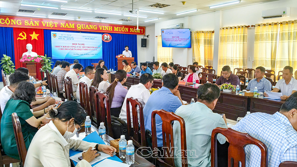 Tham dự có ông Nguyễn Hồng Hải, Cục trưởng Cục Pháp luật Dân sự - Kinh tế (Bộ Tư pháp); bà Hồ Thị Tuyết Nhung, Giám đốc Sở Tư pháp tỉnh Cà Mau, cùng đại diện một số doanh nghiệp nhỏ và vừa (DNNVV) trên địa bàn tỉnh.