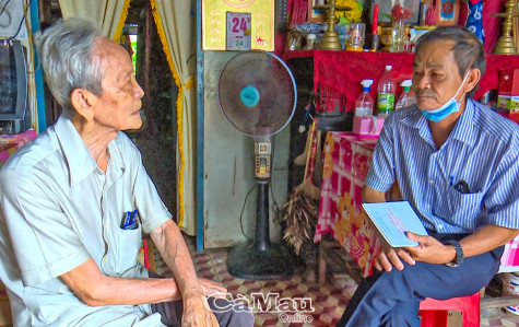 Ông Trần Kiện Toàn (bìa trái), thành viên Tổ hoà giải Khóm 3, Phường 9, TP Cà Mau, nay đã tuổi 90 vẫn miệt mài với công tác hoà giải. Ảnh: KIM CƯƠNG