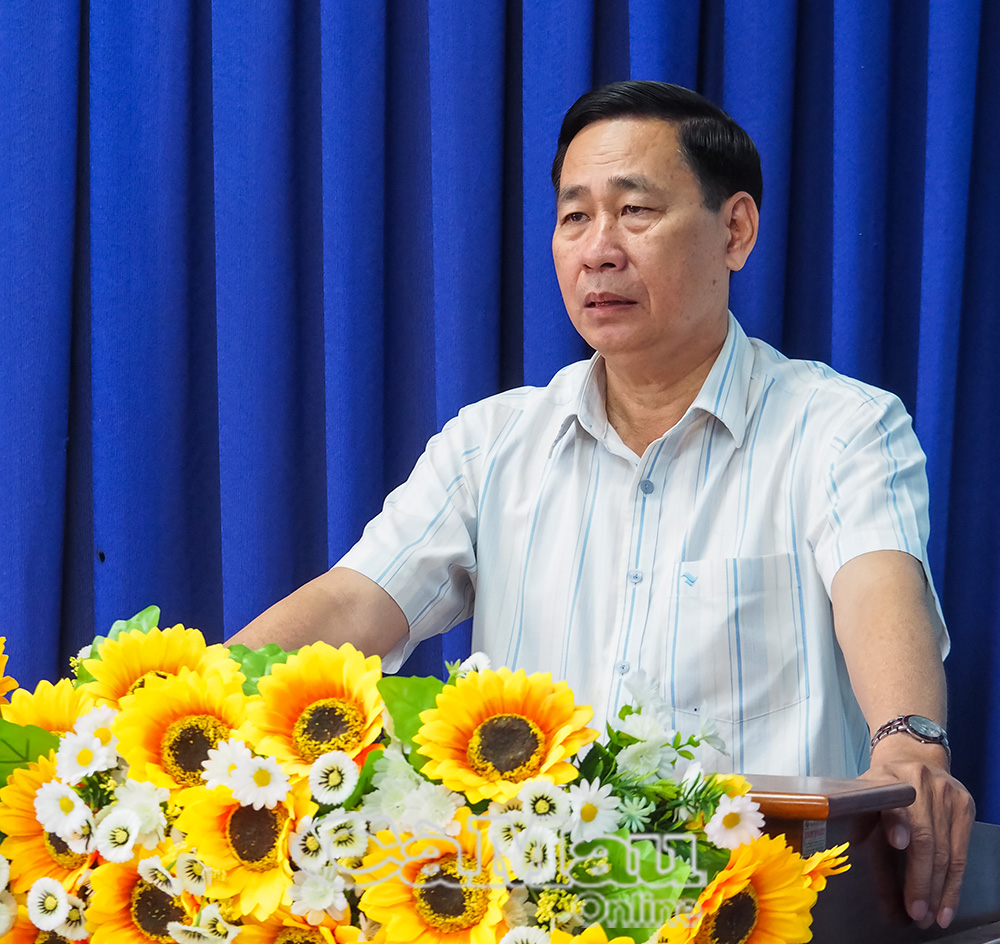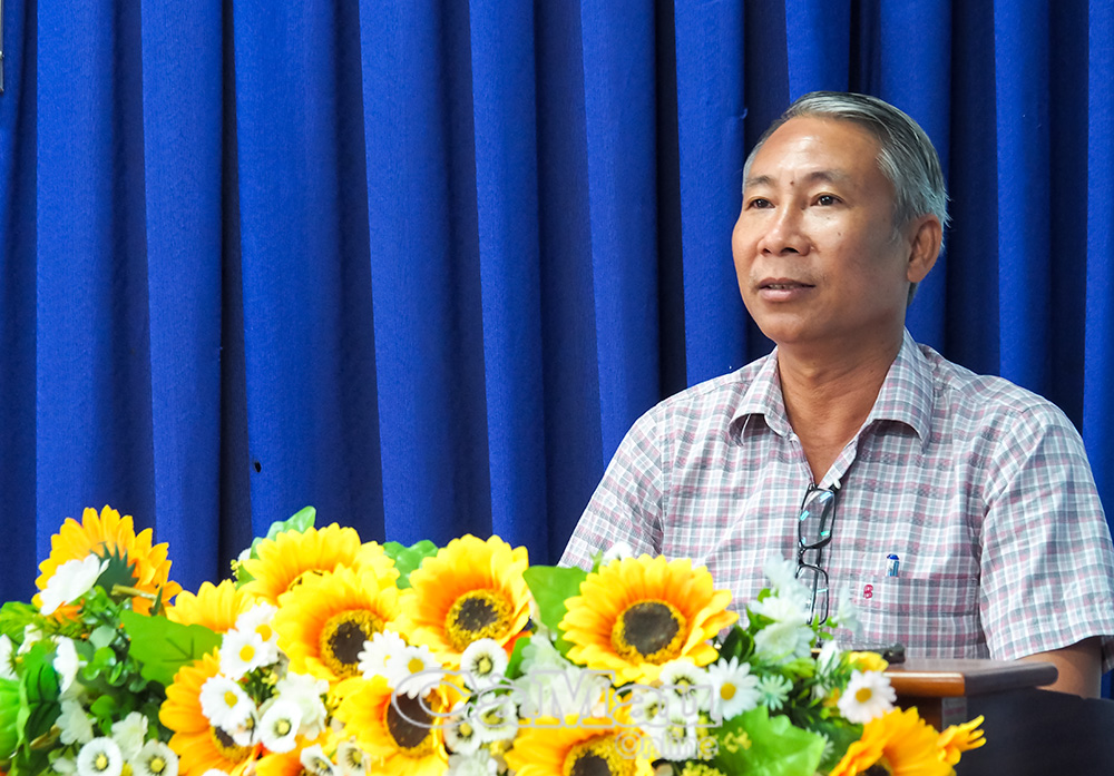 Đồng chí Nguyễn Quốc Tiến, Bí thư Đảng uỷ xã Khánh Bình chia sẻ giải pháp, cách làm hiệu quả trong công tác dân vận để bà con đồng thuận thực hiện công trình.