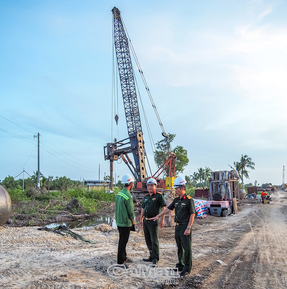 Lãnh đạo Binh đoàn 12 có mặt tại công trình đôn đốc động viên lực lượng thi công công trình thuộc địa phận xã Khánh Bình