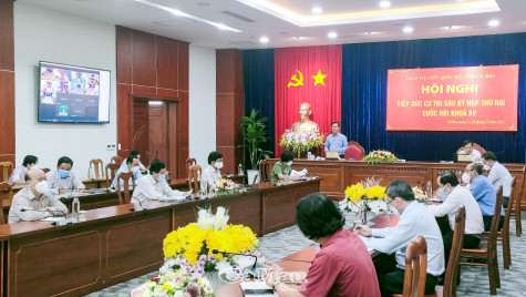 Phát biểu kết luận tại hội nghị, ông Nguyễn Quốc Hận, Phó Trưởng đoàn chuyên trách Đoàn ĐBQH tỉnh, ghi nhận và chia sẻ với những bức xúc của bà con. Trong điều kiện khó khăn chung của tỉnh cũng như cả nước do ảnh hưởng dịch Covid 19 như hiện nay, mong cử tri hết sức chia sẻ cùng tỉnh nhà, tiếp tục góp sức cùng địa phương trong phát triển kinh tế - xã hội cũng như trong công tác phòng, chống dịch và các phong trào làm đường, xây dựng nông thôn mới…