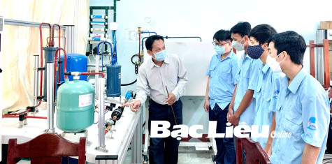 Học viên nghề Điện lạnh (Trường cao đẳng Nghề Bạc Liêu) trong giờ thực hành. Ảnh: H.T