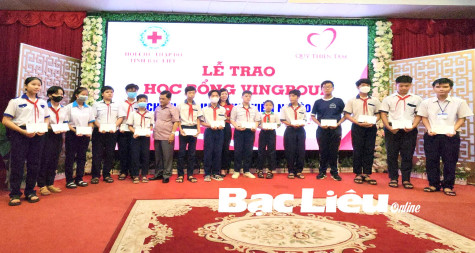 Hội Chữ thập đỏ tỉnh và Sở GD-ĐT trao học bổng của Quỹ Thiện Tâm (Tập đoàn Vingroup) cho học sinh nghèo học giỏi.