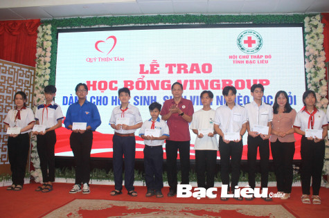 Sáng 22/12, Hội Chữ thập đỏ tỉnh Bạc Liêu phối hợp với Quỹ Thiện Tâm, Tập đoàn Vingroup tổ chức lễ trao học bổng năm học 2024 - 2025 cho học sinh - sinh viên nghèo vượt khó học giỏi trên địa bàn tỉnh.