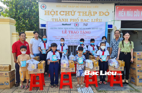 Hội Chữ thập đỏ TP. Bạc Liêu phối hợp với mạnh thường quân tặng sữa cho trẻ em nghèo. Ảnh: T.Q