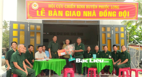 Sau hơn 3 tháng khởi công xây dựng, mới đây, Hội Cựu chiến binh (CCB) huyện Phước Long đã tổ chức lễ bàn giao căn nhà đồng đội cho ông Nguyễn Văn Để - hội viên Chi hội CCB ấp Phước 3A (xã Vĩnh Phú Đông) có hoàn cảnh khó khăn về nhà ở (ảnh).