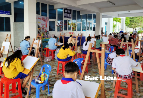 Các em thiếu niên, nhi đồng huyện Vĩnh Lợi tham gia hội thi vẽ tranh. Ảnh minh họa: H.L