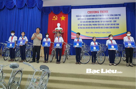 Tiến tới kỷ niệm 48 năm Ngày giải phóng miền Nam, thống nhất đất nước (30/4/1975 - 30/4/2023), Hội Khuyến học tỉnh vừa phối hợp với UBND huyện Vĩnh Lợi tổ chức triển khai thực hiện Quyết định 677 của Thủ tướng Chính phủ; Quyết định 1838 của UBND tỉnh về “Xây dựng mô hình công dân học tập giai đoạn 2021 - 2030” kết hợp chương trình trao học bổng, xe đạp cho học sinh và tặng quà cho hội viên Hội Khuyến học trên địa bàn huyện.