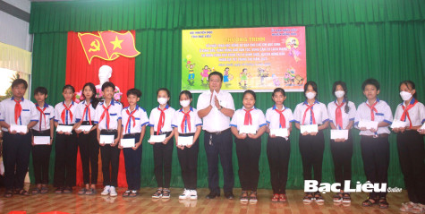 Chiều 28/9, Hội Khuyến học tỉnh phối hợp với UBND huyện Hồng Dân tổ chức trao học bổng và quà cho học sinh ở vùng sâu, vùng có đông đồng bào dân tộc, vùng căn cứ cách mạng nhân dịp tết Trung thu năm 2023 tại xã Ninh Quới (huyện Hồng Dân).