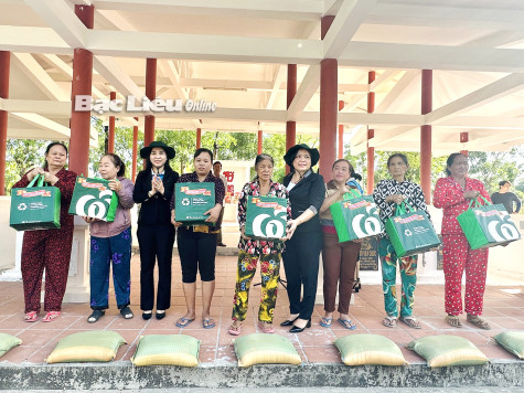 Hội LHPN tỉnh tặng quà hội viên, phụ nữ có hoàn cảnh khó khăn ở xã Phong Thạnh A (TX. Giá Rai). Ảnh: T.T