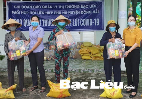 Hội LHPN huyện Đông Hải trao quà hỗ trợ phụ nữ có hoàn cảnh khó khăn do ảnh hưởng dịch COVID-19. Ảnh: H.L