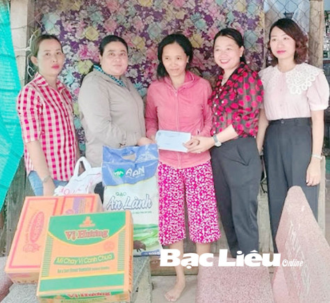 Hội LHPN huyện Hòa Bình hỗ trợ kinh phí và nhu yếu phẩm cho gia đình hội viên bị tốc mái nhà do lốc xoáy.