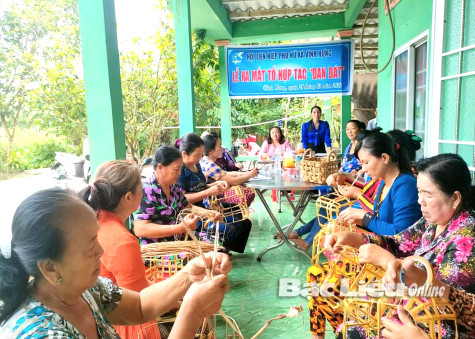 Tổ hợp tác đan đát của Hội LHPN xã Vĩnh Hưng (huyện Vĩnh Lợi) giúp nhiều hội viên có thu nhập ổn định. Ảnh: T.N