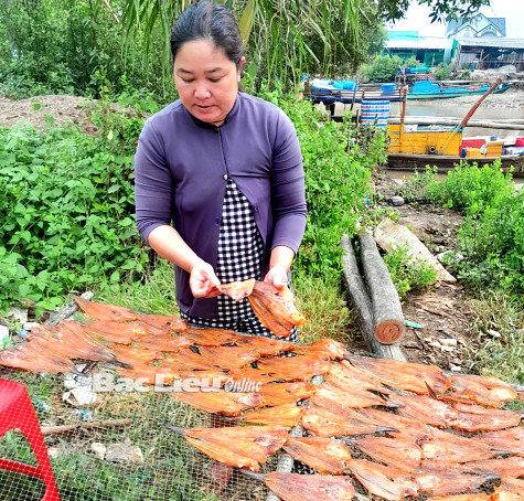Hội viên phụ nữ phường Nhà Mát (TP. Bạc Liêu) tham gia mô hình tổ hợp tác “Sản xuất khô các loại”. Ảnh: Đ.K.C