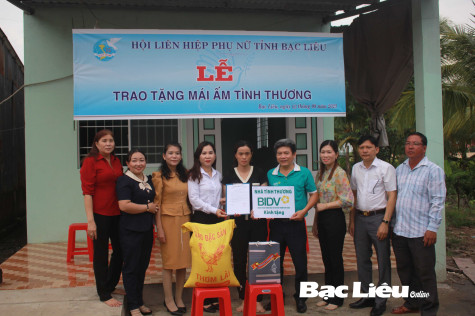 Chiều cùng ngày, Hội LHPN tỉnh và BIDV Bạc Liêu bàn giao thêm 2 căn “Mái ấm tình thương” cho hội viên Phan Thị Định (khóm 9, Phường 1, TP. Bạc Liêu) và Thạch Nang (ấp Công Điền, xã Vĩnh Trạch, TP. Bạc Liêu) với mỗi căn trị giá 50 triệu đồng. Cả 2 hội viên đều lớn tuổi, không có nguồn thu nhập ổn định và gặp khó khăn về nhà ở.