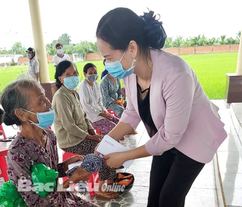 Hội LHPN tỉnh trao hỗ trợ cho các hội viên phụ nữ khó khăn tại xã Hưng Thành (huyện Vĩnh Lợi). Ảnh: T.T