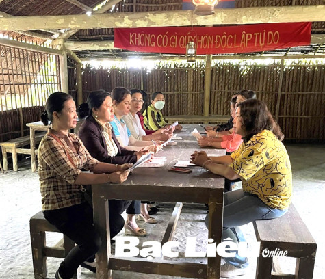 Chi bộ Hội LHPN tỉnh sinh hoạt chuyên đề học Bác tại Khu căn cứ Cái Chanh (huyện Hồng Dân). Ảnh: T.T